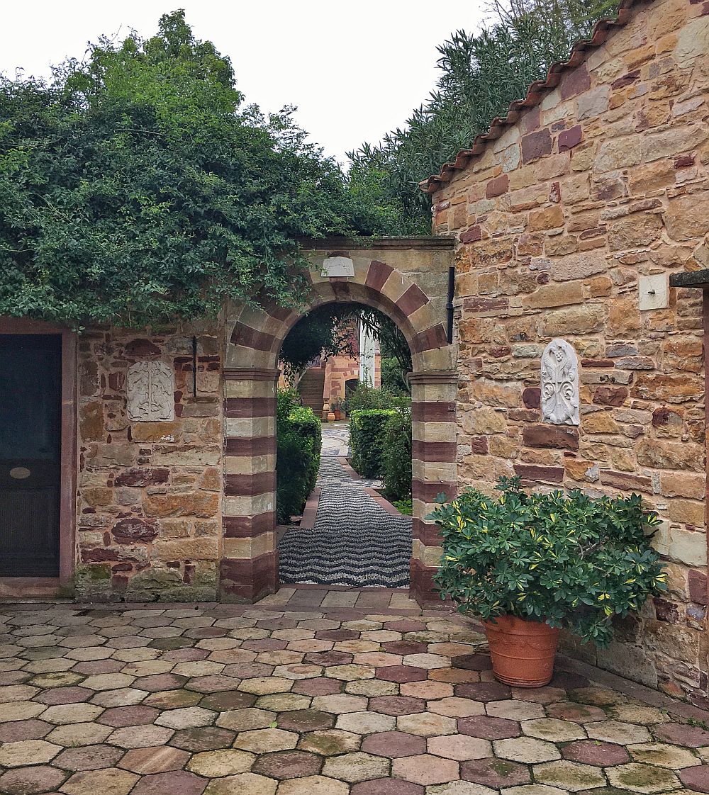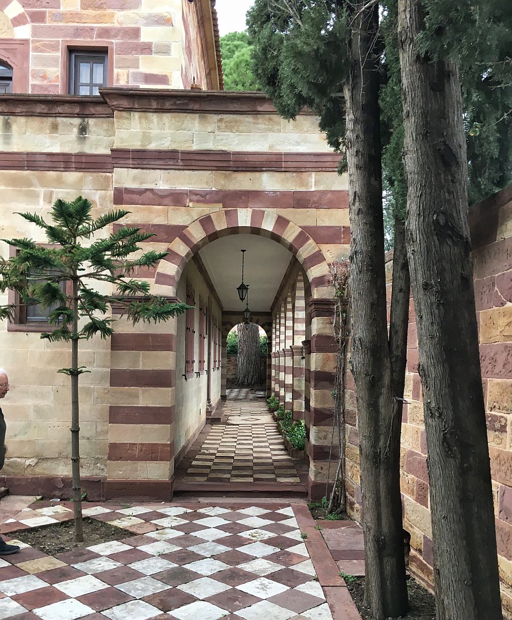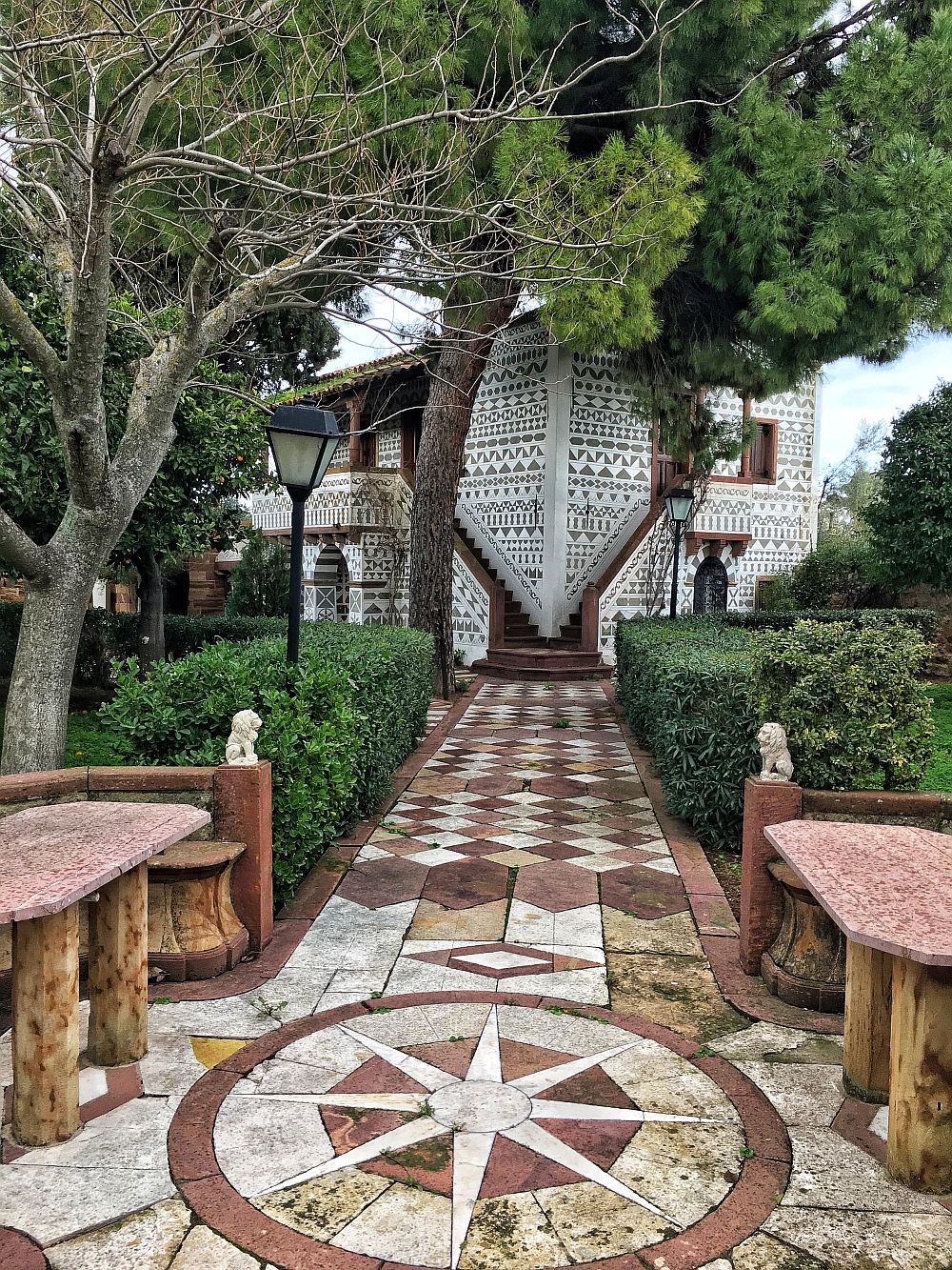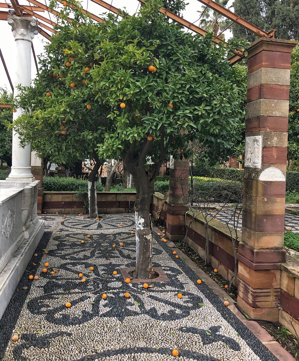 The natural environment is in total harmony with the local architecture, and the high walls, built of local reddish stone from the village of Thymiana, protect the mansions and citrus orchards from extreme weather conditions. Architectural features include arched doors and windows, balconies and terraces decorated with bas-reliefs, huge iron garden doors and marble-paved alleys.