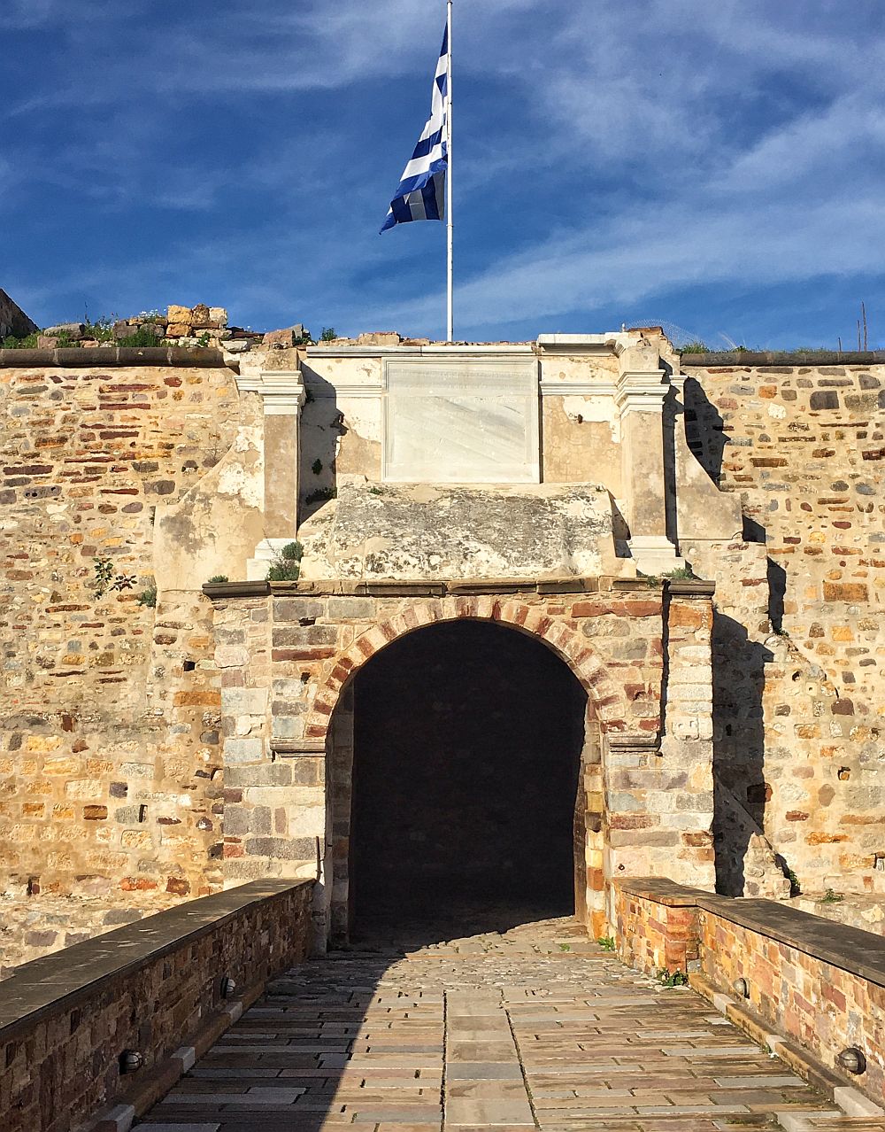The medieval castle dates back to the 10th century, from the mid-Byzantine period, consolidated under the Genoese occupation and built so as to have a direct connection to the port, also representing the fortified center of the city. Its main entrance (Porta Maggiore), built by the Venetians in 1694, is located at the Southern end and the walls, both land and sea, form an irregular pentagon, with imposing bastions, eight of which are quite well preserved.